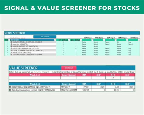 Stock Screener Excel Template with multiple Indicators